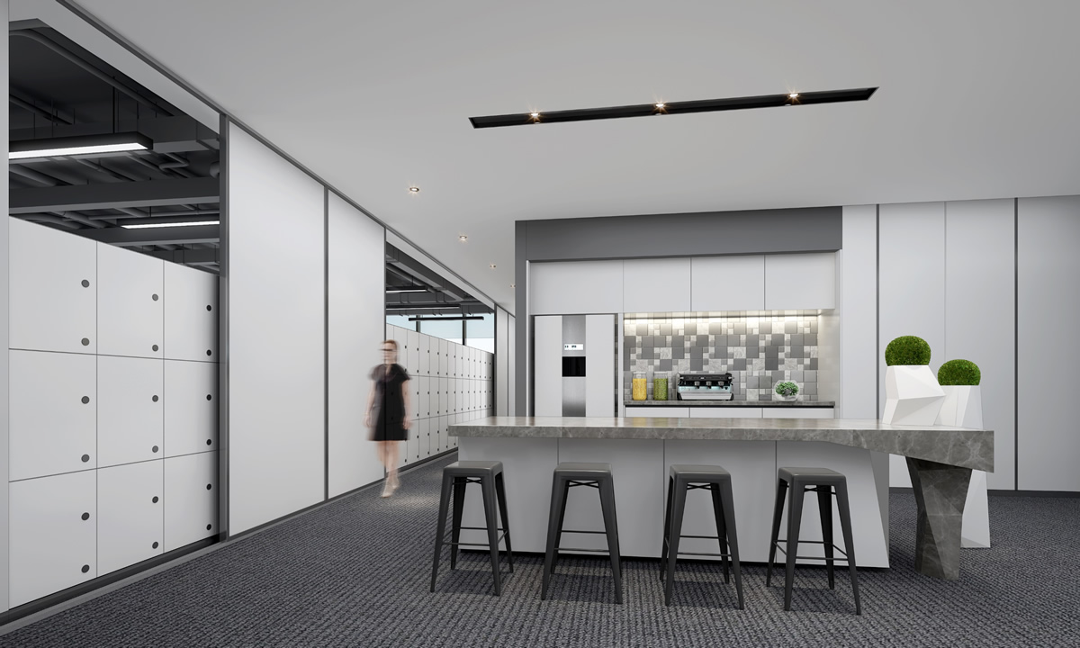 茶水間是辦公室內(nèi)部一個(gè)很重要的空間,它是員工休息和交流的場(chǎng)所,也是一個(gè)展示公司文化的重要窗口。本案的茶水間設(shè)在員工辦公區(qū)的中間區(qū)域,沒有過多的空間,因此,茶水間相對(duì)比較簡(jiǎn)單。