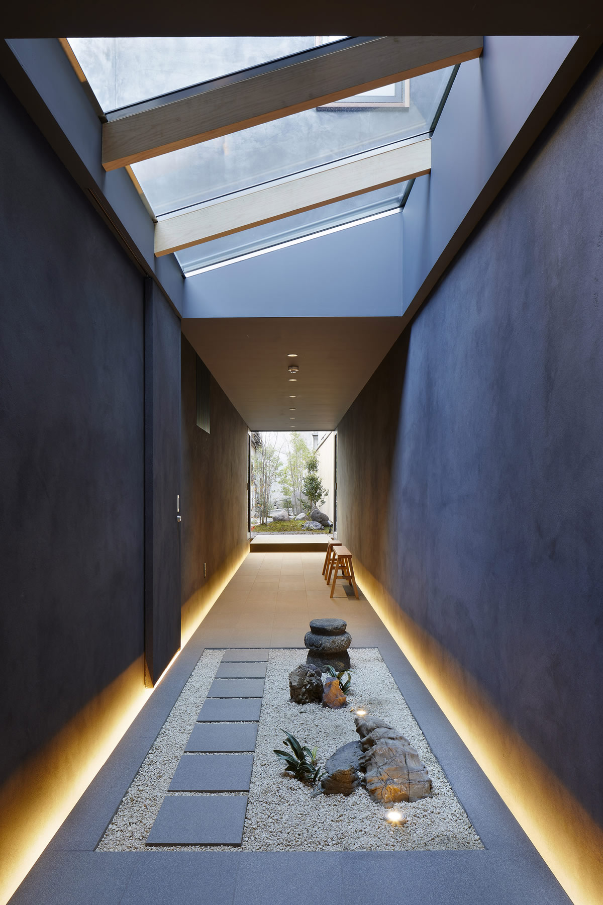 庭院景觀的設(shè)計便以這些石頭為中心展開,還保留了院內(nèi)原有的楓樹,同時結(jié)合現(xiàn)代和傳統(tǒng)的造景語法 ,創(chuàng)造了一個看似日式又有點現(xiàn)代的庭院。