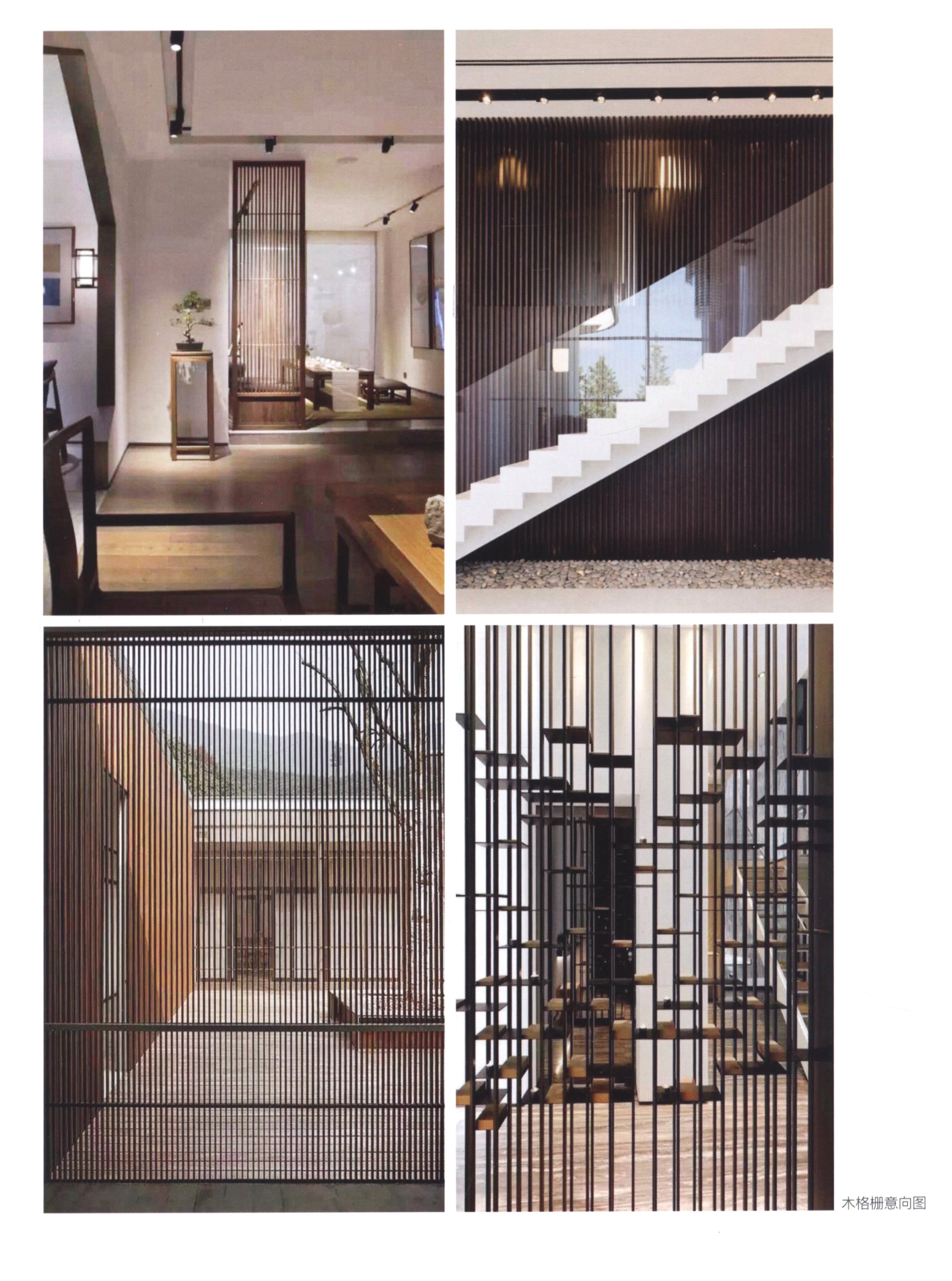1).木質本色格柵條元素在墻面、隔段、窗上的大量運用,與簡樸又有蘇州格調的氛圍暗合(見下圖)