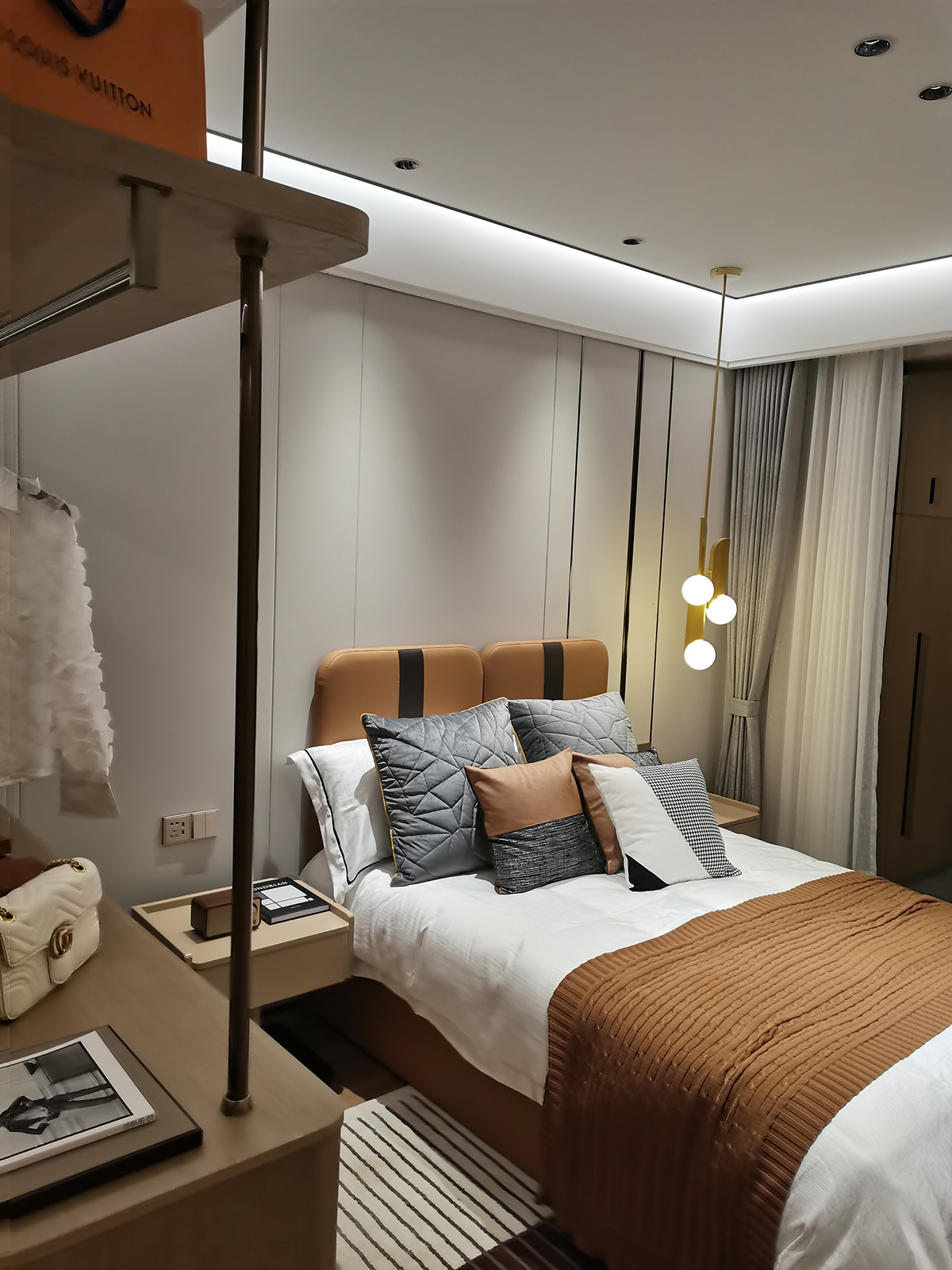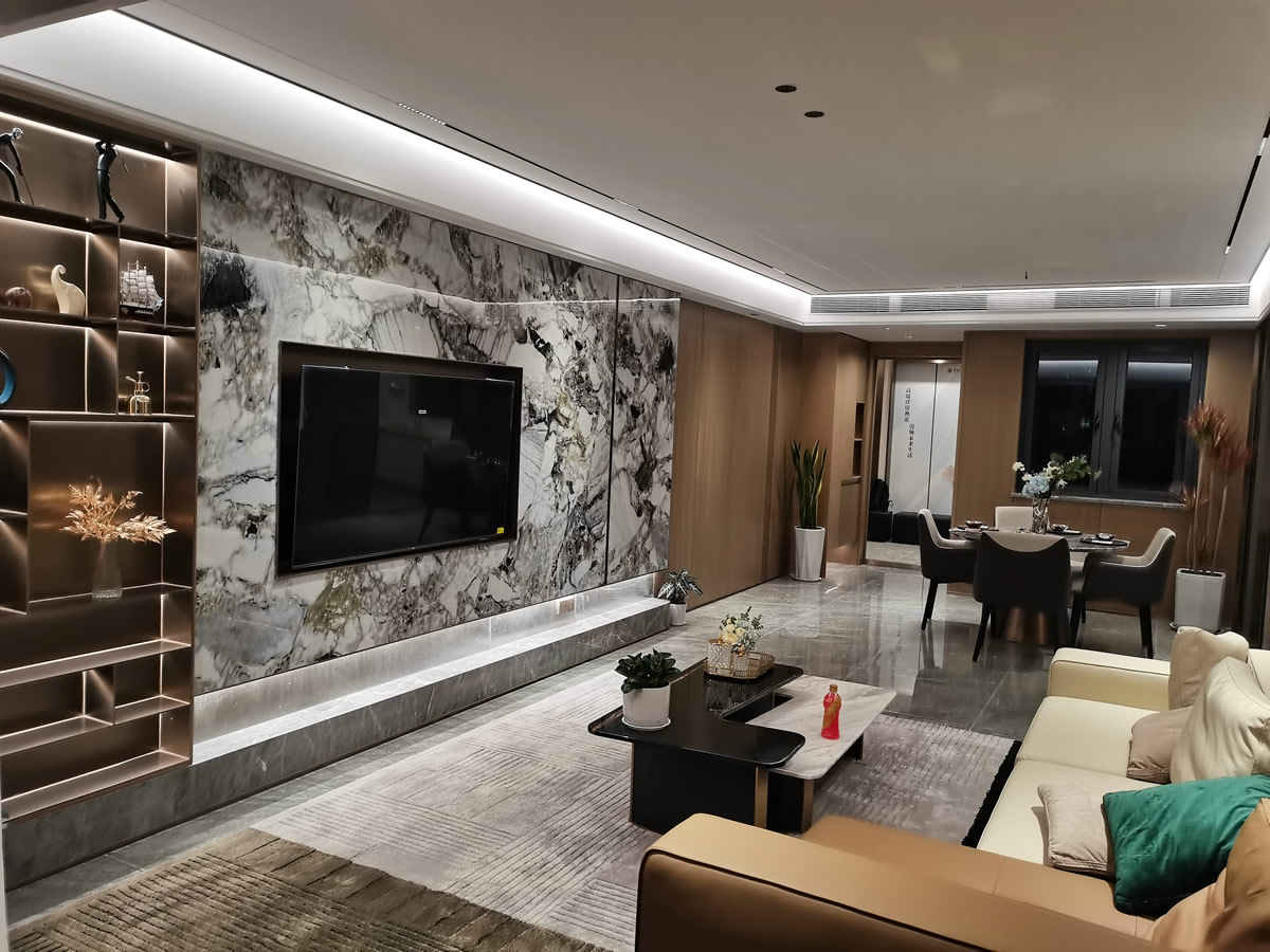 本案采用了大理石、金屬、紋理細(xì)膩的木質(zhì)、布藝、皮質(zhì)等材質(zhì),來(lái)營(yíng)造舒適的居住氛圍。