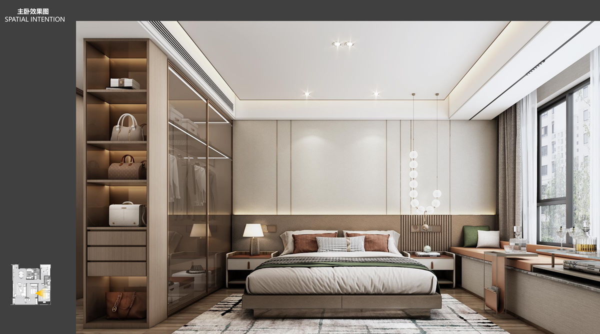本案以米色系為基礎(chǔ)色,神秘內(nèi)斂的青綠色作為點(diǎn)綴色。有人說(shuō),“咖啡色是一種***不會(huì)過(guò)時(shí)的流行時(shí)尚色彩,它是一種穩(wěn)重而不失大氣的色彩!”