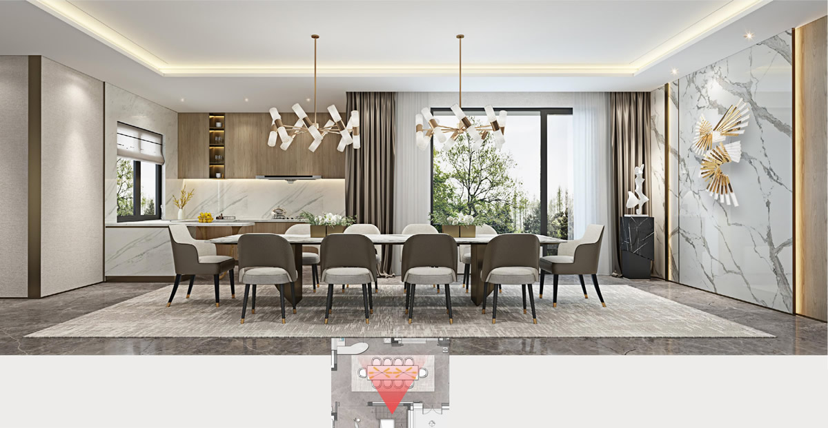 跟隨香氣的指引來到了餐廳,淡淡的玫瑰花香撲鼻而來,餐桌上擺放著女主人精心擺放的花藝,與白色的餐具交相輝映,奇妙的光影營造出浪漫溫馨的氣息。