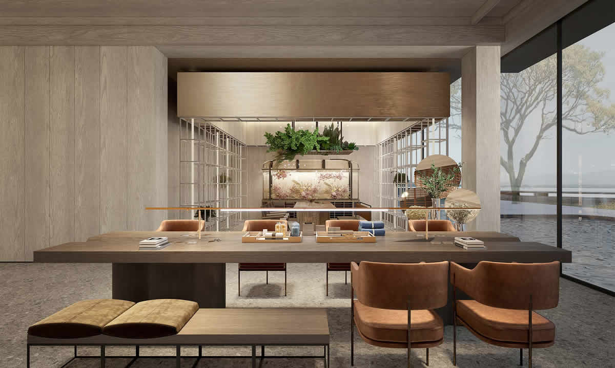 趣舍的外觀,只看一眼就會被那橫豎的直線條間柔美的弧度所吸引。這是一座和山體、竹林緊緊相連的建筑,甚至室內(nèi)一面直接以山體為墻,獨特的設(shè)計創(chuàng)意讓趣舍多了份與眾不同的意味。