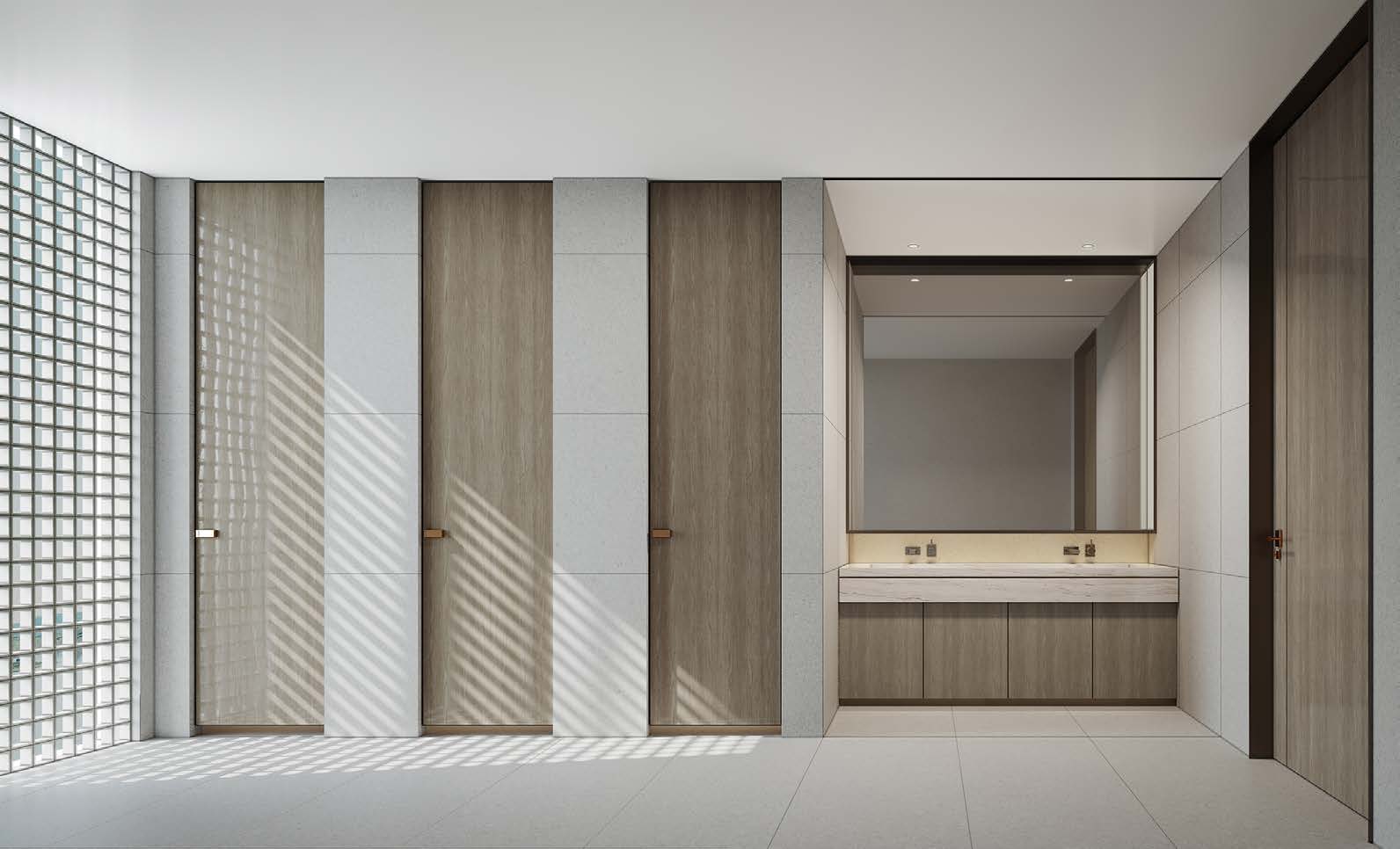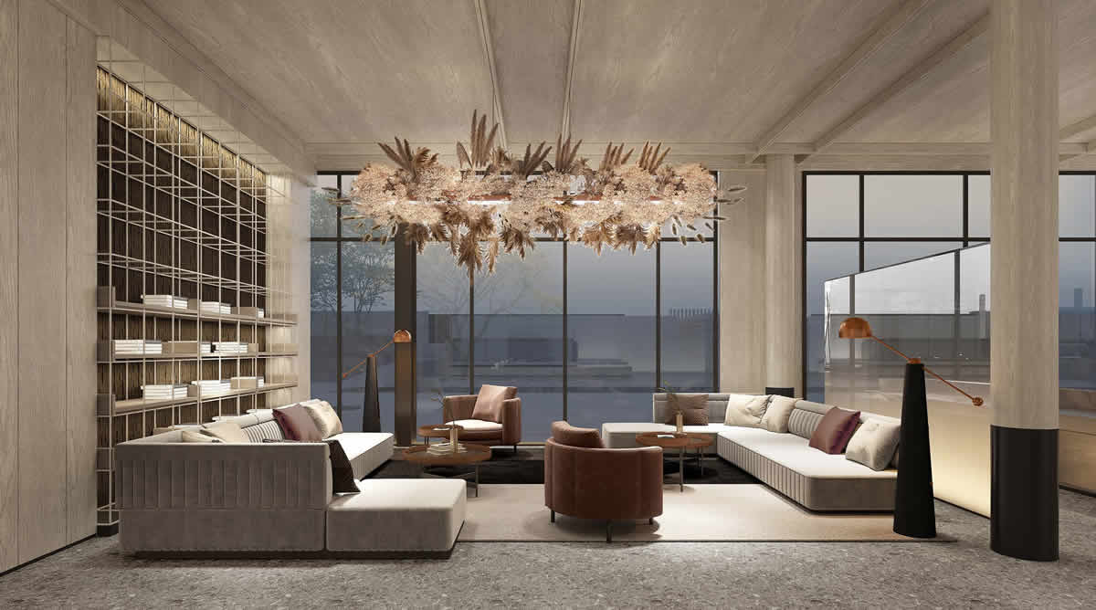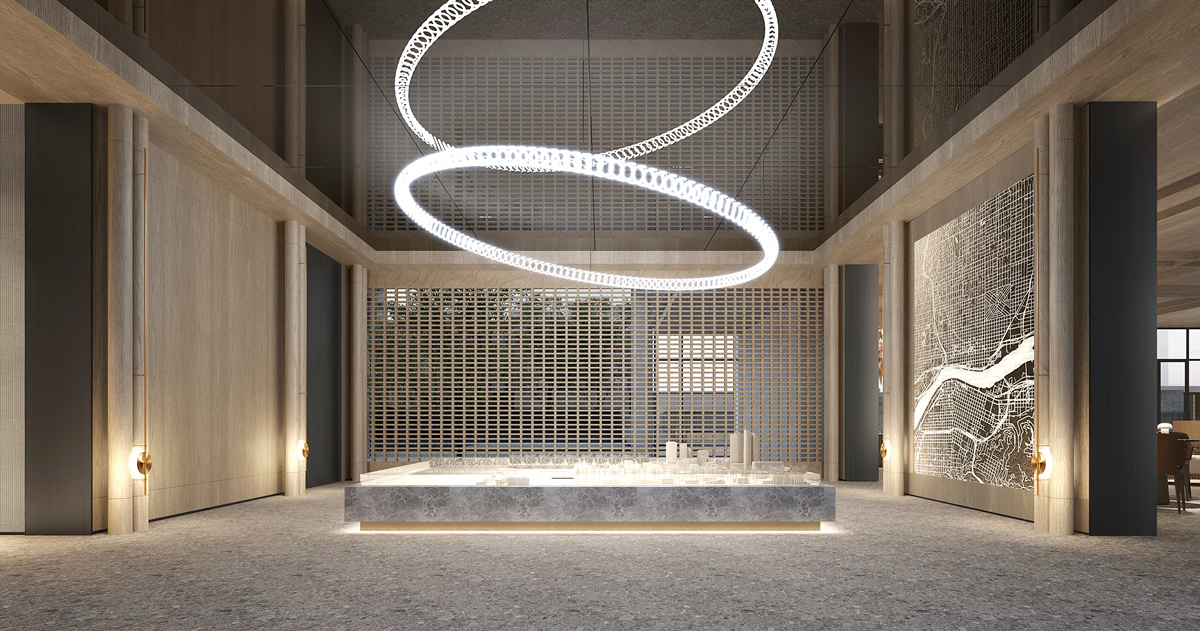 立面采取做高一層的手法,實現(xiàn)豎向體量的拓展,以保證良好的視覺效果。重疊相映的玻璃磚,隨著人行的距離和角度的不同,形成動態(tài)的夢幻效果。室內(nèi)則通過細長延續(xù)的通道,結(jié)合線性的設(shè)計,營造空間的深遠與修長。