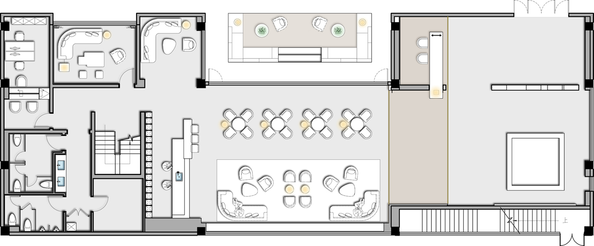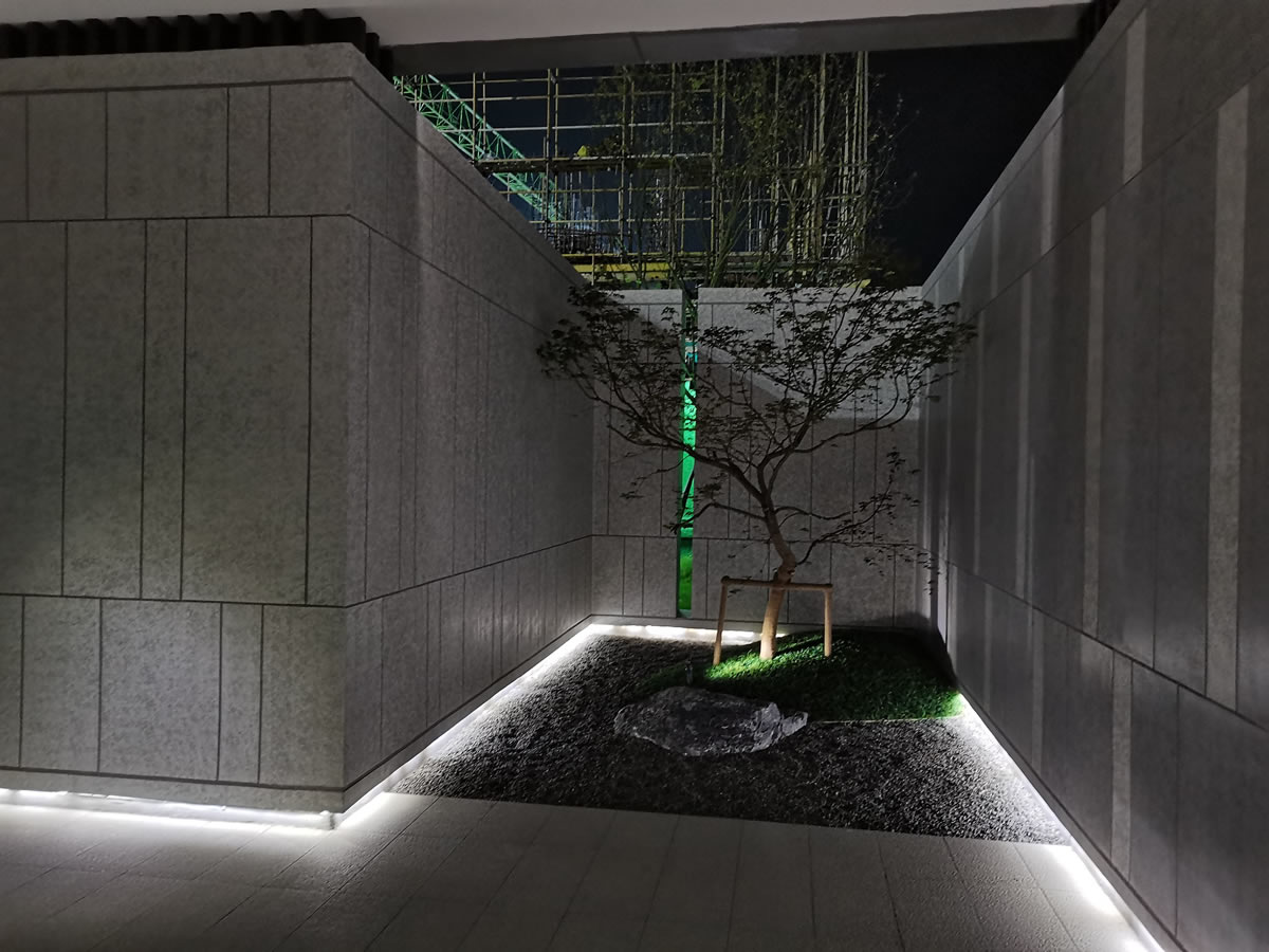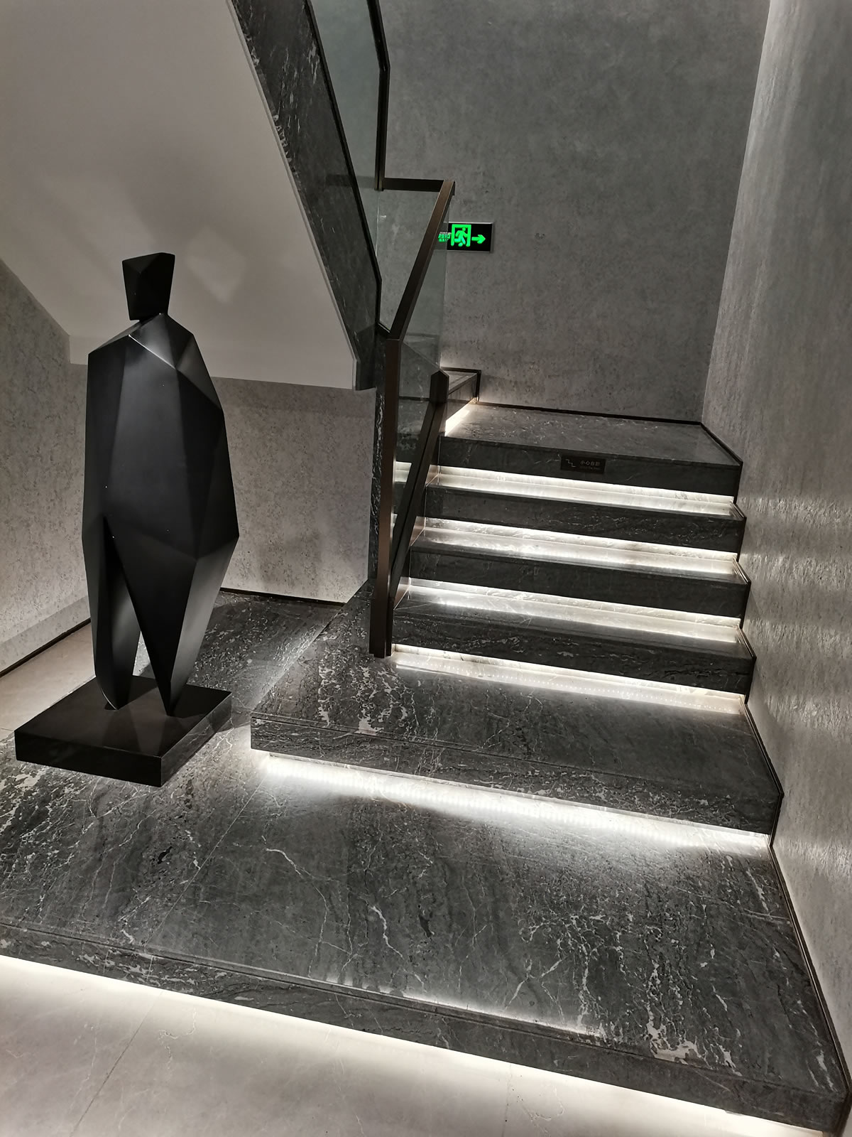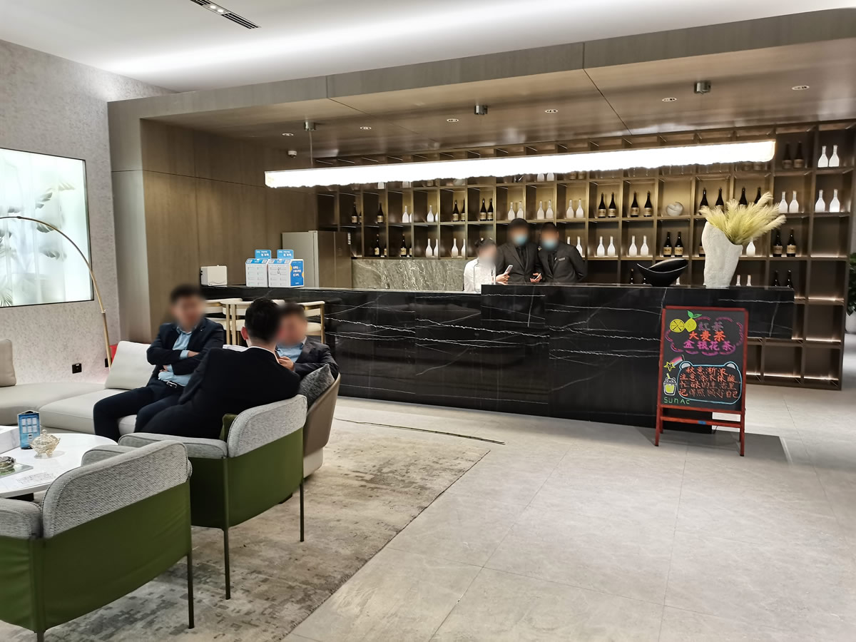 環(huán)湖而立,依水而起。水起水落,行云流水。此處為亞克力水波紋屏風(fēng),呼應(yīng)了開發(fā)商靠潘安湖景觀房的要求,且給人汪洋大海的感覺。