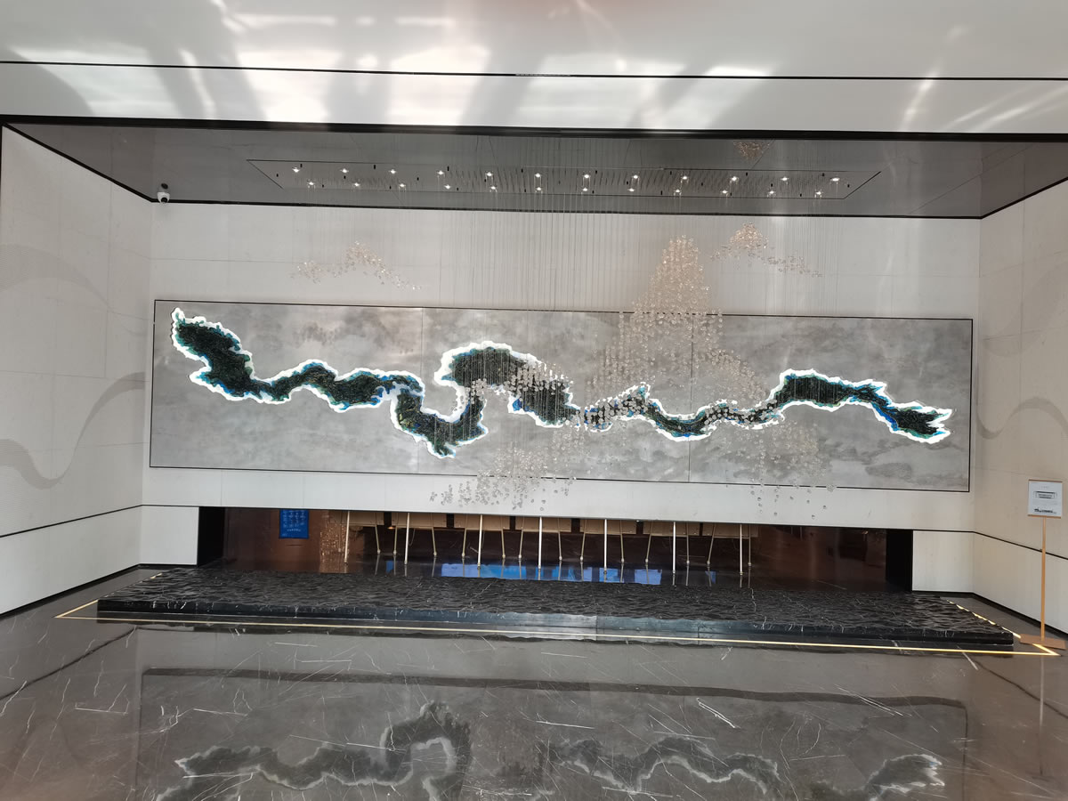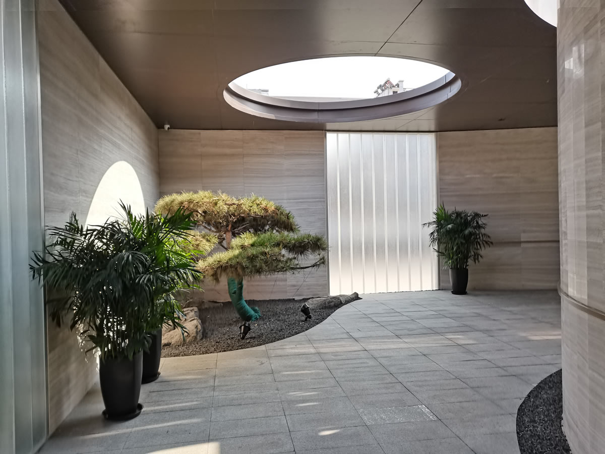 設(shè)計(jì)美學(xué)充滿(mǎn)抽象感,采用了柔化光幕立面,前方的水景和老樹(shù)相伴,營(yíng)造出一種靜謐、安詳?shù)姆諊?。?dāng)您走近售樓處時(shí),內(nèi)部景色也會(huì)隱晦地映射在光幕上,讓您感受到這座城市大境的獨(dú)特魅力。